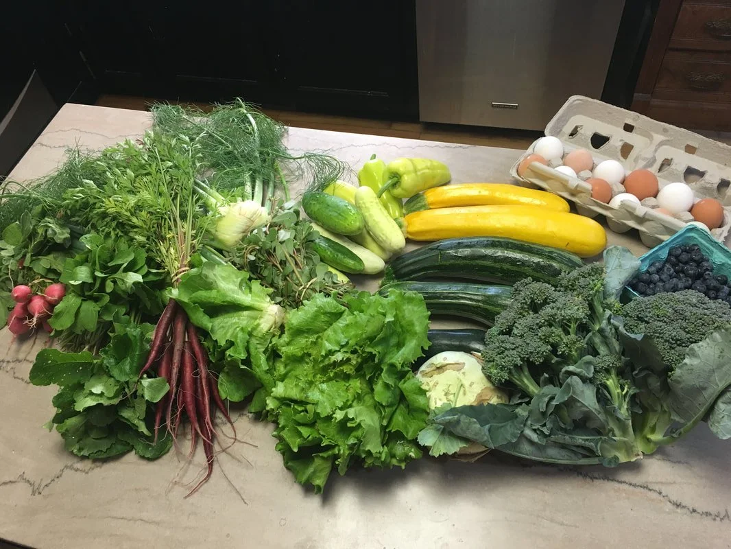 One thing that leapt out of the haul that is my CSA share this week is the bunch of purslane. The tasty weed that Michael Pollan praises as one of the healthiest foods on the planet. It is packed with vitamins, minerals, and antioxidants. It also has the highest Omega-3 fatty acid of any plant. At the MN Governor's Residence, the chef has asked me to leave the purslane growing when I'm pulling weeds in the vegetable garden. During public tours I've started handing out tidbits of this lemony green to good reviews. It's mild tart flavor is a great addition to salads.